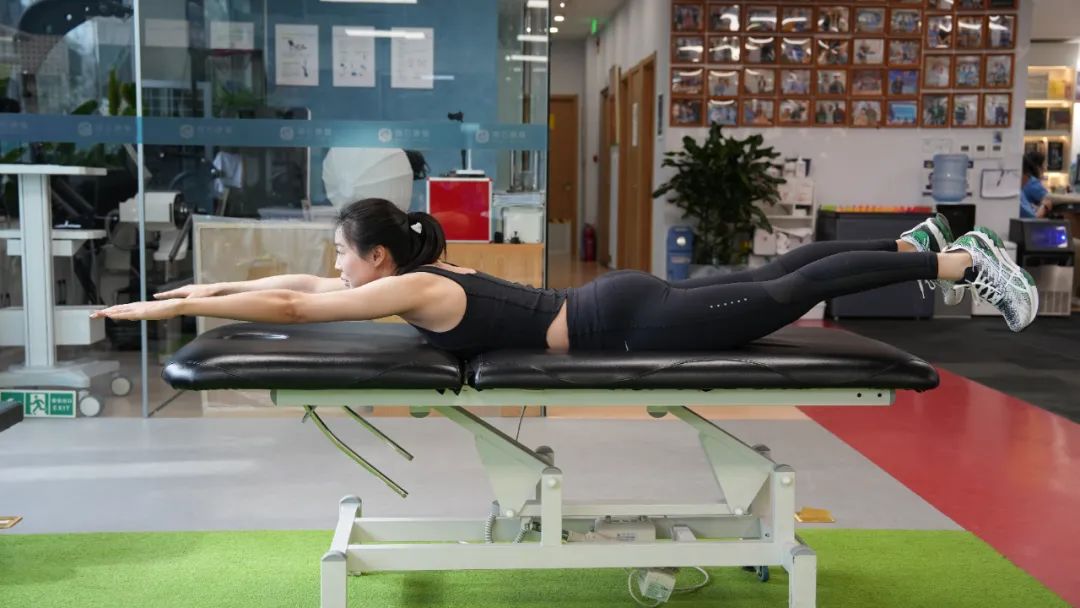 动作要领:平整的地面铺上瑜伽垫,俯卧于瑜伽垫上,腹部贴地,头、四肢向上抬起,俯身时吸气,挺身时呼气。每次进行10~15个,进行4~6组。组间休息时间为30~45秒左右。