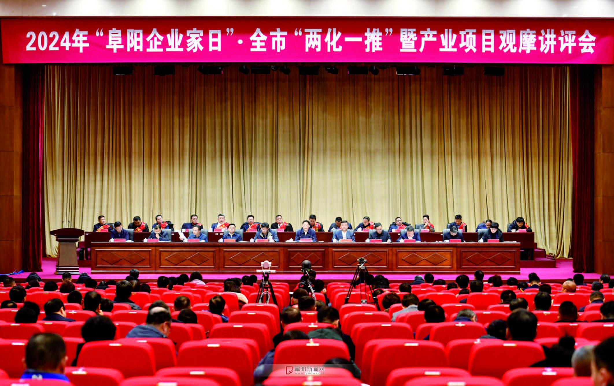 2月21日下午,2024年“阜阳企业家日”·全市“两化一推”暨产业项目观摩讲评会召开。市委书记刘玉杰出席会议并讲话,强调要深入学习贯彻习近平总书记关于安徽及阜阳工作的重要讲话重要指示精神,认真贯彻落实全省创建一流营商环境暨推进民营经济高质量发展大会精神,凝心聚力大抓优化营商环境、强化“双招双引”、推进民营经济高质量发展,倾心倾力打造满意“阜”务营商环境品牌,为加快建设“三地一区”“十个区域性强市”增添强劲动能。市委副书记、市长胡明文作点评讲话。市人大常委会主任胡明莹,市政协主席李志伟,市委常委,市人大常委会、市政府、市政协负责同志,市中级人民法院院长、市人民检察院检察长等参加。市委常委、组织部部长吕国平主持会议。