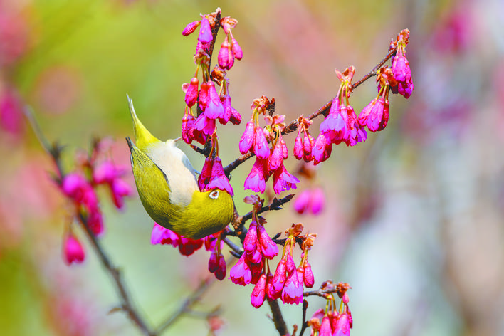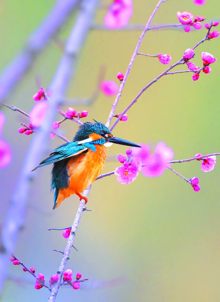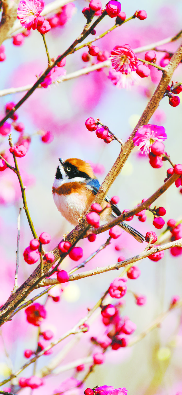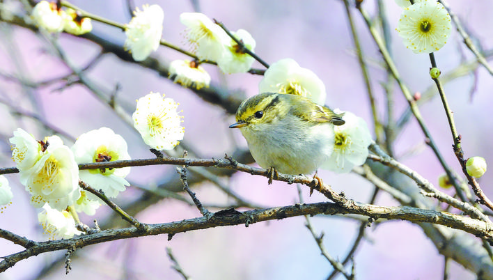 在他们的镜头下,春风送暖,花香四溢,鸟儿在花丛中觅食休憩、轻盈起舞……花鸟同框,满目皆是浓浓春意。在这些鸟儿中,有红梅枝头春意闹的红头长尾山雀、有绿梅从中一点黄的黄眉柳莺,有枝头赏梅的蓝色翠鸟,还有腊梅花上摇头晃脑的红胁蓝尾鸲……它们的活泼身影在花丛中穿梭,为这幅春日画卷增添了几分灵动。
