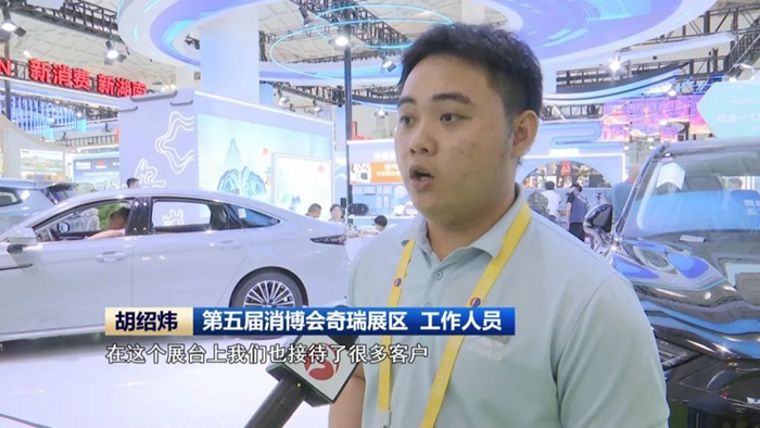 在这个展台上我们也接待了很多客户,他们也对奇瑞这个品牌非常地认可,也是想通过消博会这个平台,把我们奇瑞的最新的车型和技术更好地展示给客户,希望能达成更多的合作。