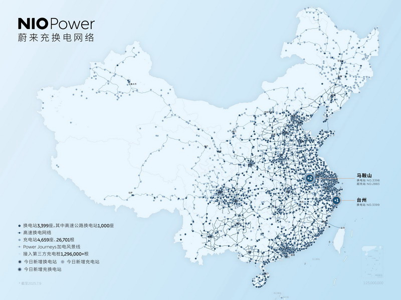 千站计划实现后,蔚来、乐道用户均可通过高速换电网络畅行全国,出行和燃油车一样方便。从三亚到齐齐哈尔、从上海到丽江、从澳门到银川,蔚来、乐道用户都可以通过高速公路换电网络直达。截至目前,蔚来高速公路换电站累计为用户提供近1350万次高速换电服务,换电补能已经成为新能源车高速出行最优解。