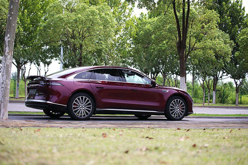 风云A9L侧面线条流畅舒展,溜背式造型更为整车增添了动感。半隐藏式门把手让车身侧面更加简洁,不但有效降低风阻系数,还避免了冬天被冻住的尴尬。此外,风云A9L配备20英寸密辐式轮圈,搭配245/45 R20规格马牌轮胎,不仅提升了行驶稳定性,也进一步彰显了其豪华定位。