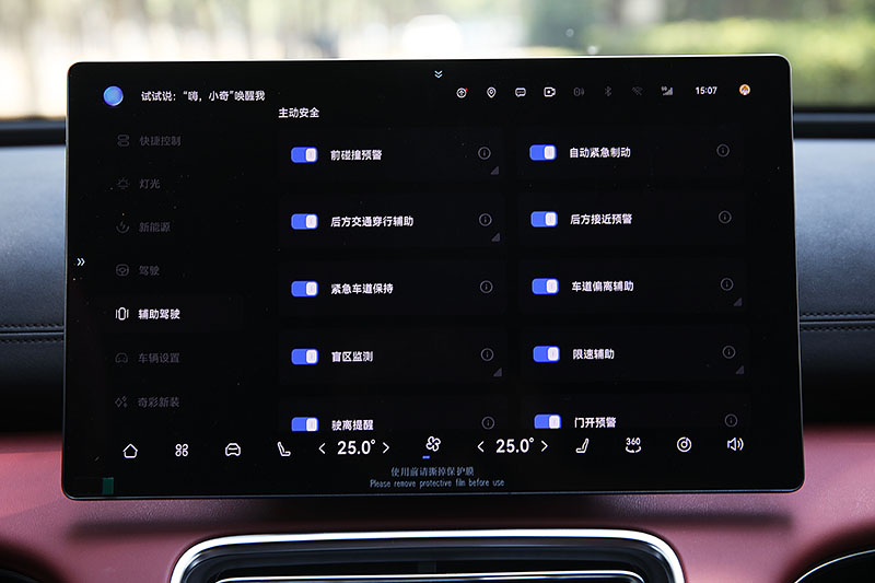“嗨,小奇”AI语音助手识别精准,支持每个座位独立识别,连续对话,快速执行相应操作,彻底解放了双手。