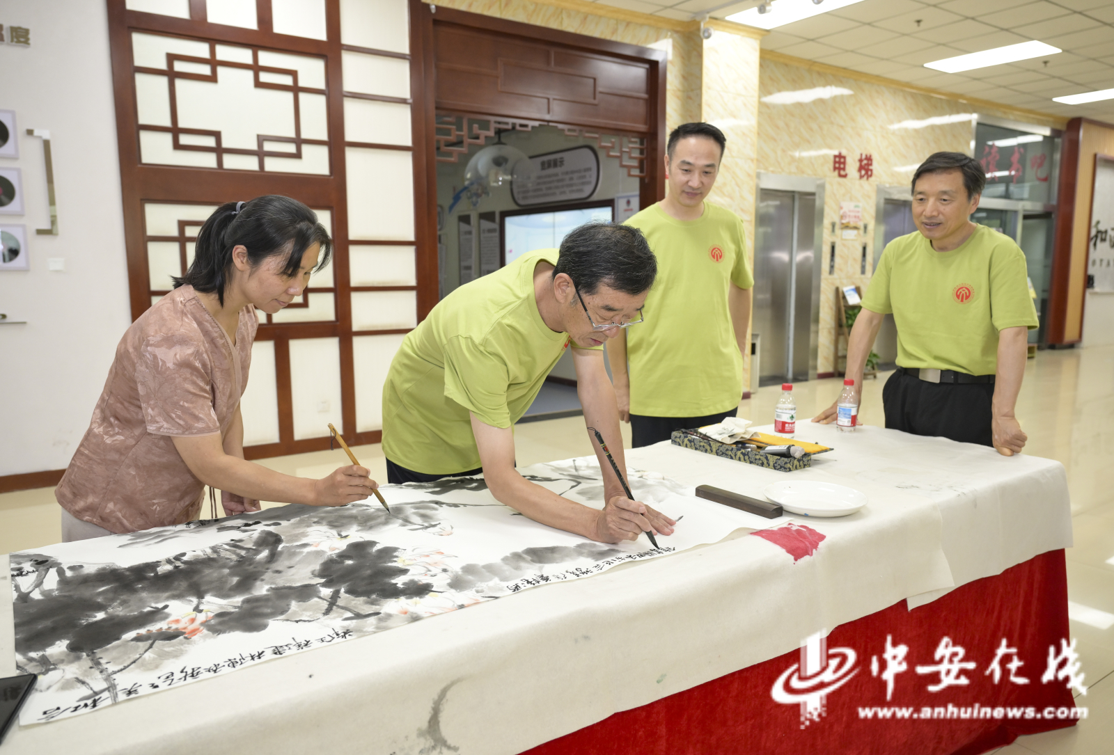 安徽省文联副主席、省美协主席陈林(右一)带领两地画家共创佳作