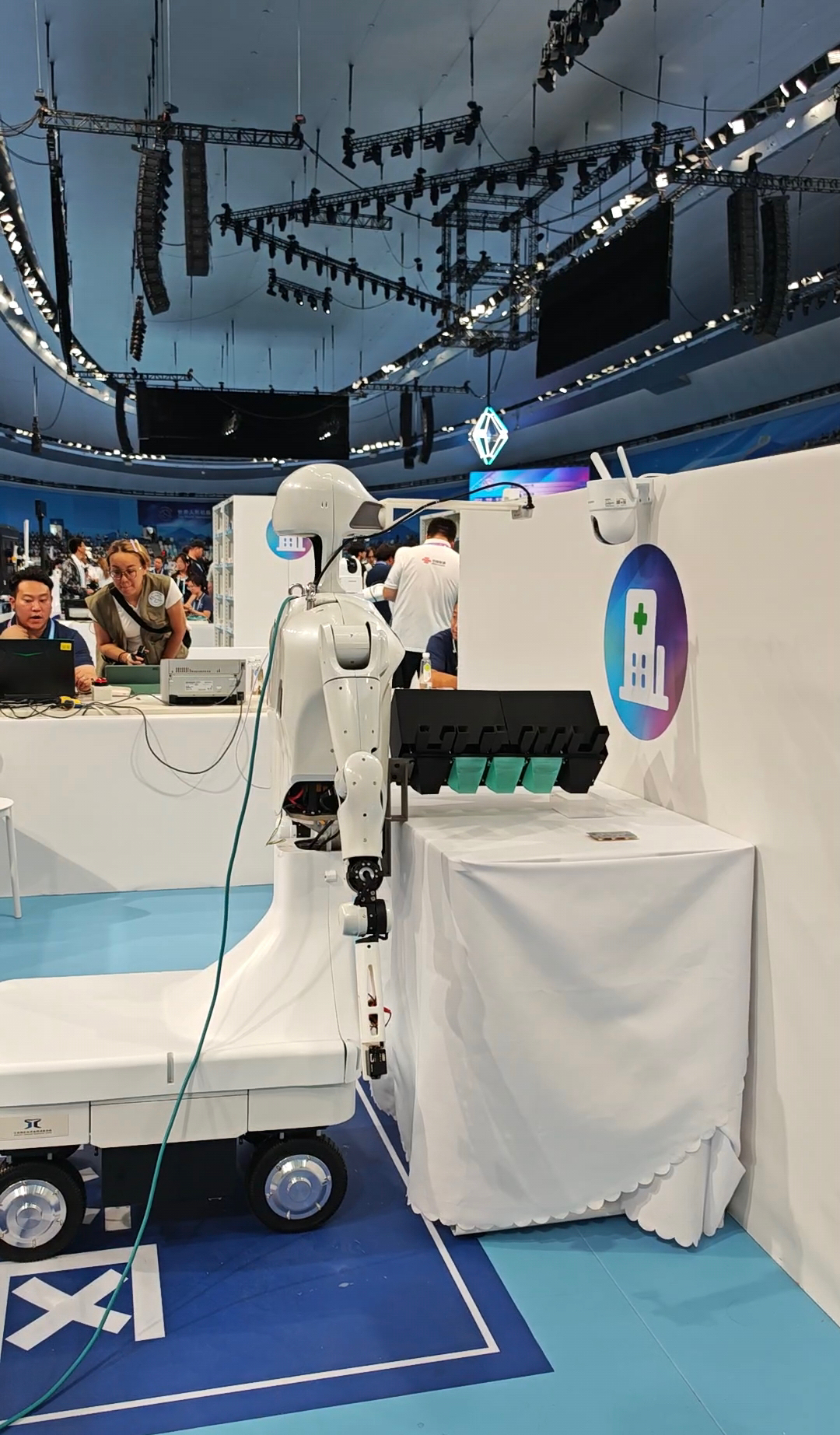 来自江淮前沿技术协同创新中心的启江拆药分装机器人正在比赛