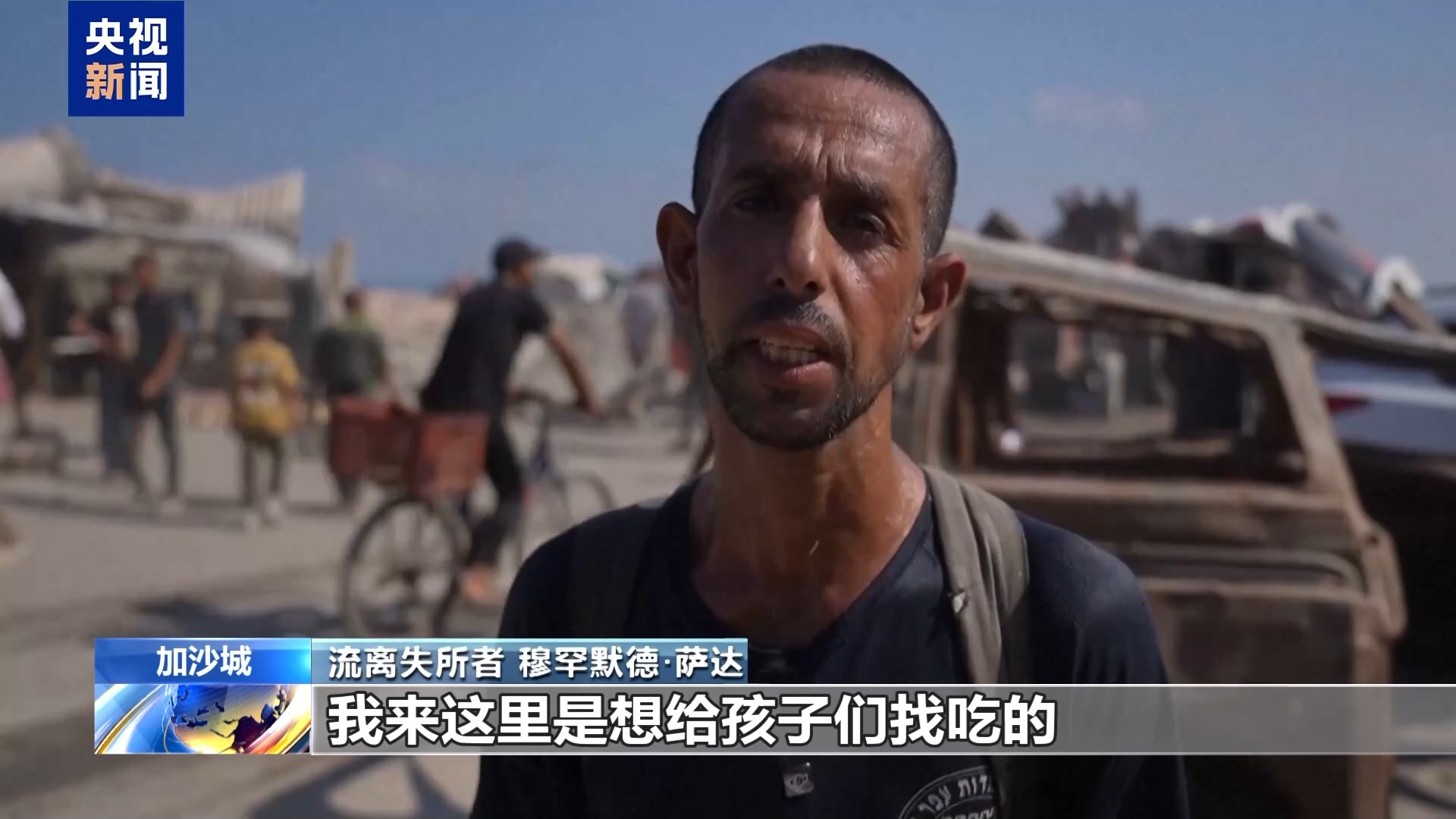 流离失所者 优素福·哈马德:我们来慈善厨房领食物,因为以色列的分发点没有援助物资可发,我们领不到任何援助物资,援助物资也不会交由联合国机构分发。这就是以色列的政策,让我们饿死。以色列在镜头前展示援助物资,但是那些都不是给我们的。