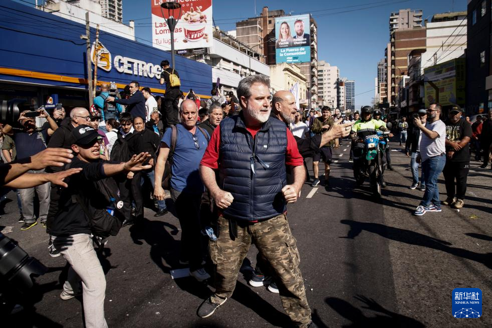 8月27日,在阿根廷洛马斯德萨莫拉市,人们在助选活动上表达对阿根廷总统米莱的不满。新华社发