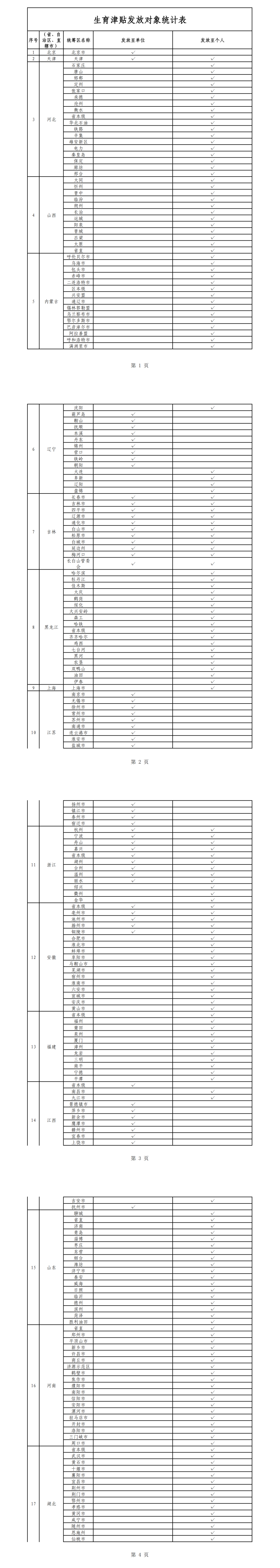 各统筹区生育津贴发放具体情况详见下表。
