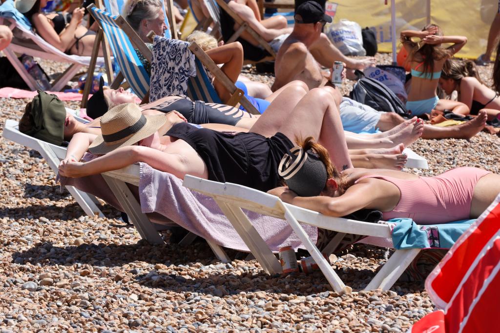7月12日,人们在英国南部布赖顿的海滩休闲。新华社发