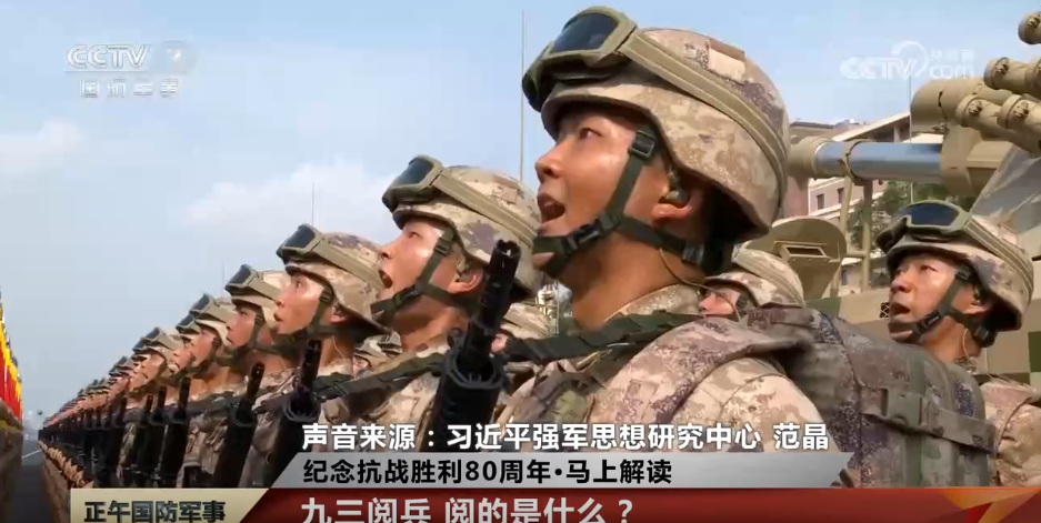 习近平强军思想研究中心 程达王:直升机高悬“正义必胜、和平必胜、人民必胜”的醒目标语飞过天安门上空,这是人间正道的庄严昭告,是和平发展的时代强音。中国军队越强大,人民就越安宁。80年前,人民军队用“小米加步枪”打败了日本侵略者;80年后的今天,这次大阅兵向世界宣示,爱好和平的中华民族,经历战火洗礼的人民军队,有信心、有决心、也有能力捍卫抗日战争和世界反法西斯战争的胜利成果,为构建人类命运共同体贡献更多力量。