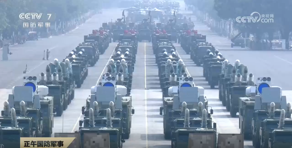 在今天上午的阅兵式上,我军力量结构新布局首次集中展示,参阅的武器装备都是从国产现役主战装备中遴选,首次亮相的新型装备占比很大,地面和空中装备体系编成、混合编组,多个陆海空基战略重器、高超精打、无人和反无人装备首次展示,空中梯队模块化体系化编组,涵盖我军现役主战机型,多型明星装备首次亮相。