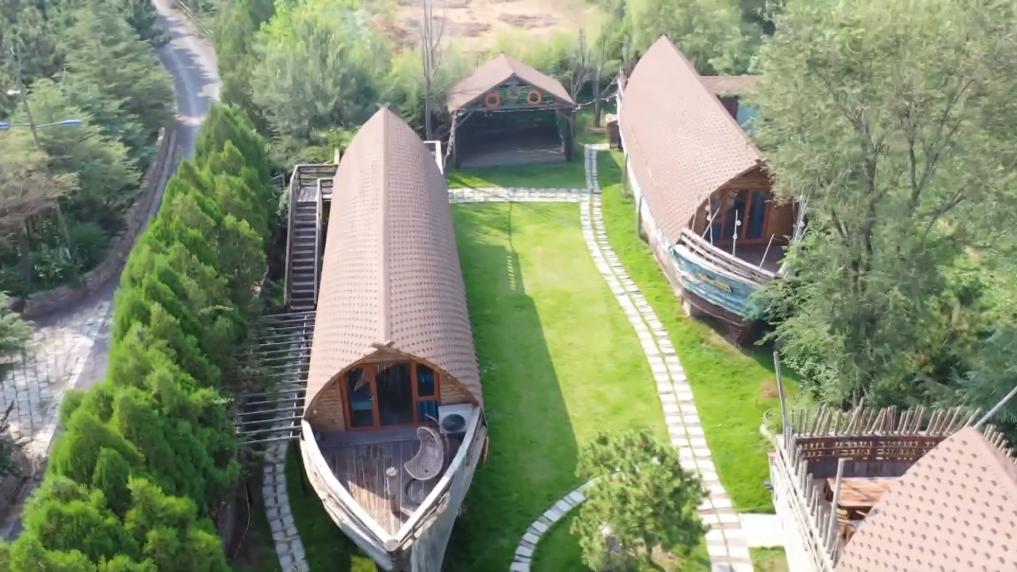 在日照山海天旅游度假区,有一个充满海洋元素的园区。50多艘木壳老渔船被搬上岸,改造成船坞民宿。渔具老物件与现代创意结合,让老船有了新生命。