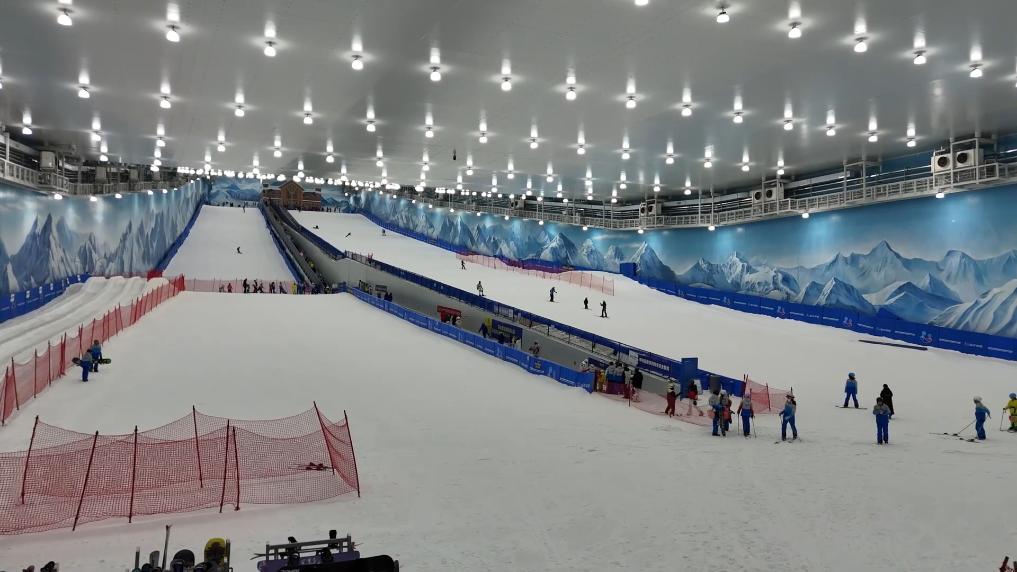 位于西咸新区秦汉新城的这个滑雪馆占地91亩,穹顶挑高50米,四条雪道如银龙蜿蜒:初级道宽31米,供新手“蹒跚学步”;中级道最大坡度15度,可体验俯冲快感;两条高级道经国际雪联认证,落差达34.7米,适合滑雪高手翻腾回转。