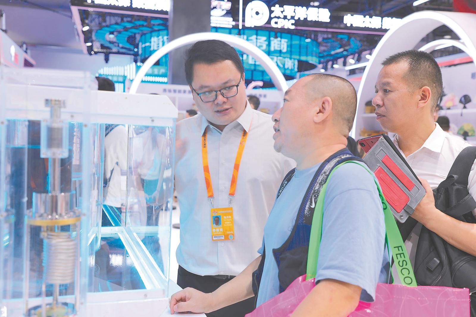参展商(左一)在介绍量子计算机。记者 罗广心 摄