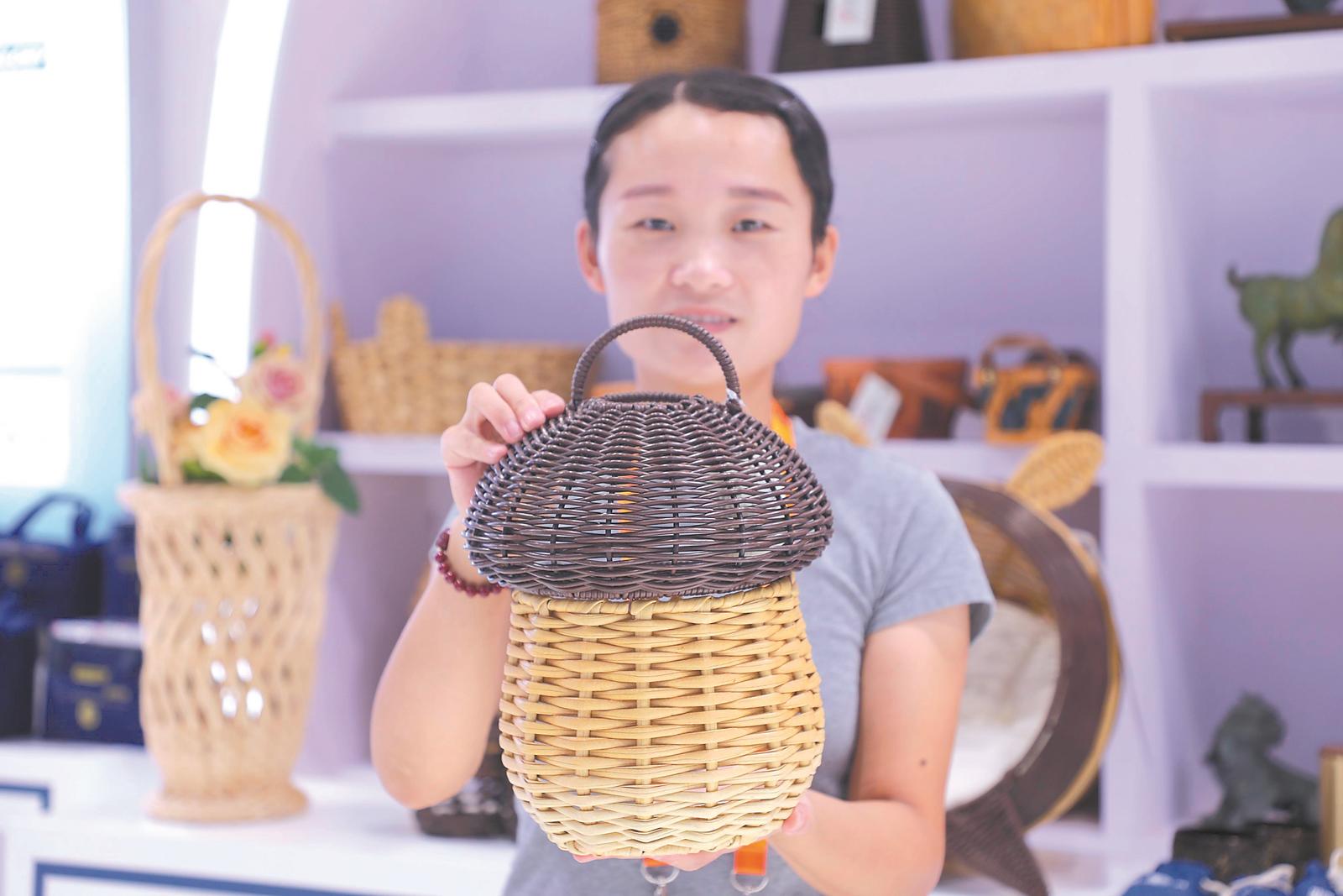 参展商在展示阜阳柳编手工艺品。记者 罗广心 摄