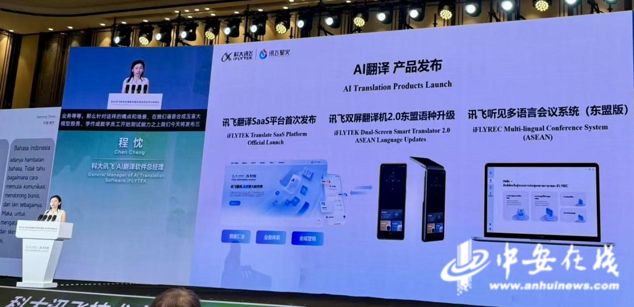 为进一步推进区域本土化合作,科大讯飞针对东盟国家和地区发布和升级了三大产品,为本届东博会提供高效的语言支持:讯飞翻译SaaS平台是讯飞AI翻译软硬联动的枢纽,能够提供文本、文档、同传、译制、人工等各类翻译能力,实现多端互联、软硬联动;讯飞翻译机双屏2.0(东盟语言升级)专为东盟地区优化,作为1v1交流到小型会议的随身翻译终端,上线了东盟10个语种及12个全球核心语种的双向语音互译,将助力东盟博览会期间的沟通交流和中国企业出海商贸;讯飞听见多语言会议系统(东盟版),则全面覆盖东盟十国语种,具备多语言识别、智能互译、全流程数据治理等功能,可实现多语言会议记录、会议纪要、会议同传等,能够有效提升会议效率与决策质量。