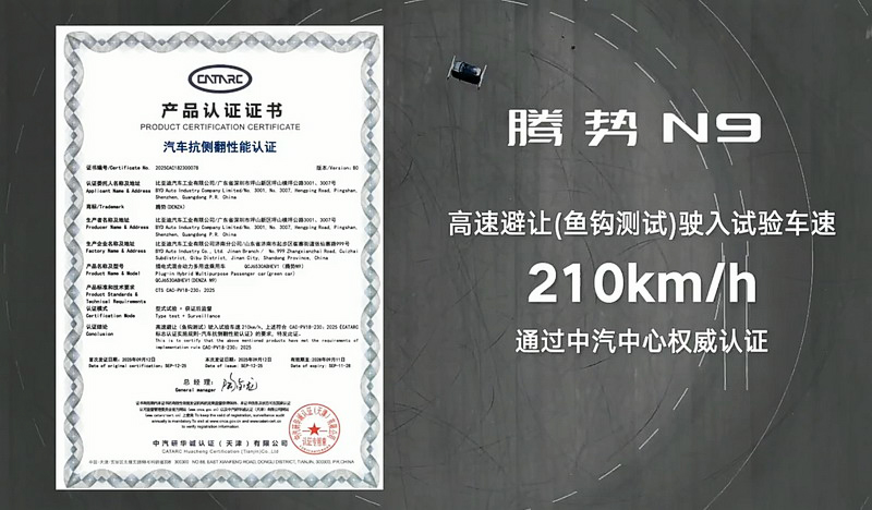 新车基于“易三方”平台打造,在安全性能上实现跨越式进阶。2026款腾势N9在高速避障测试中三破世界纪录,最高通过时速达210km/h,树立行业安全新标杆。不仅如此,车辆在高速爆胎、强侧风等极端情况下仍能保持稳定行驶,更独创“雨雪内八字模式”,轻松应对湿滑路面,真正做到全程安心。