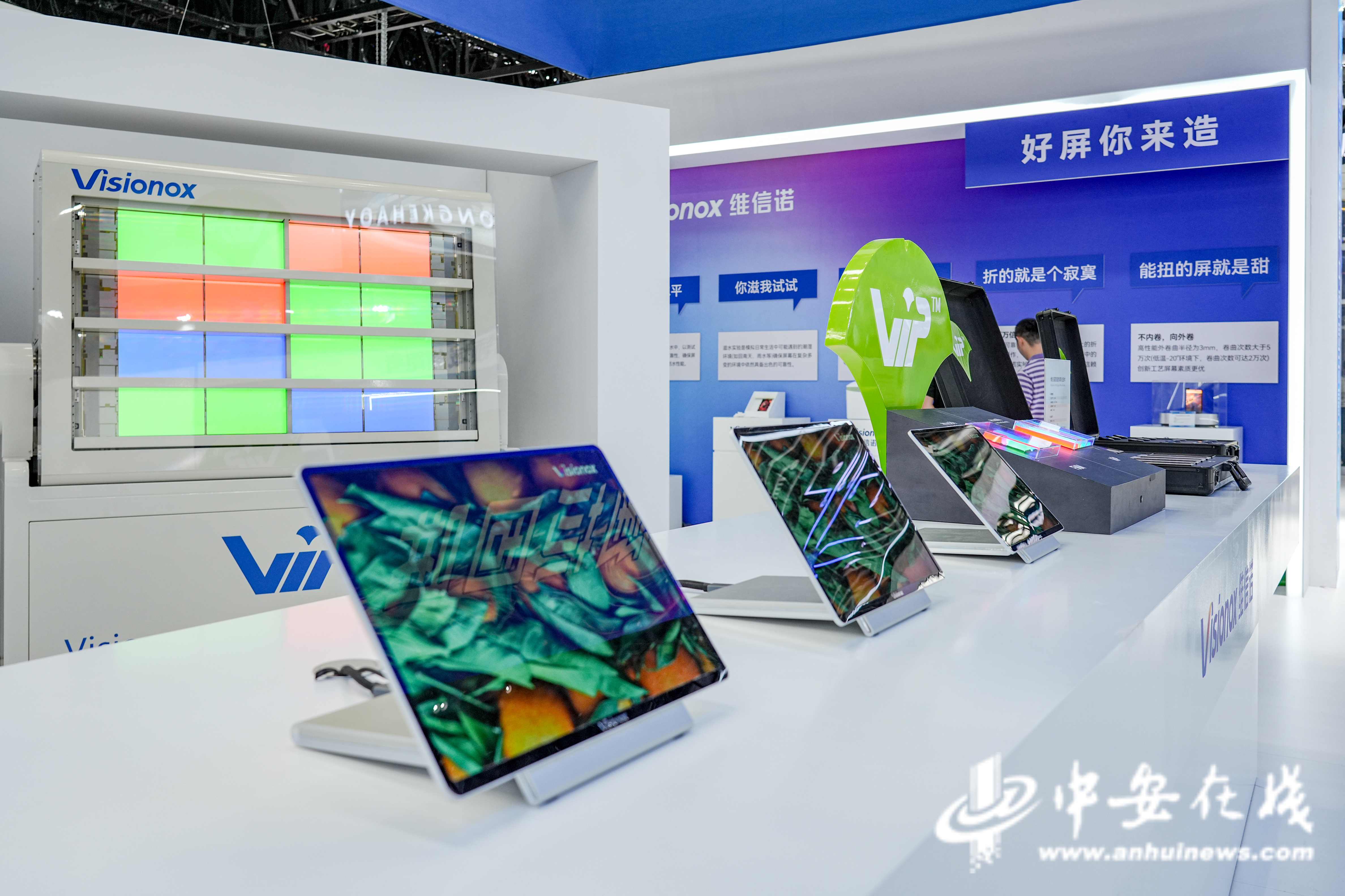 而在新型显示展区,京东方、维信诺等来自合肥的行业头部企业纷纷带来其最新产品,从掌上的咫尺小屏到超百寸的巨幅宽屏,变的是大小,不变的是惊艳显示,全新产品持续刷新着视觉体验的边界。
