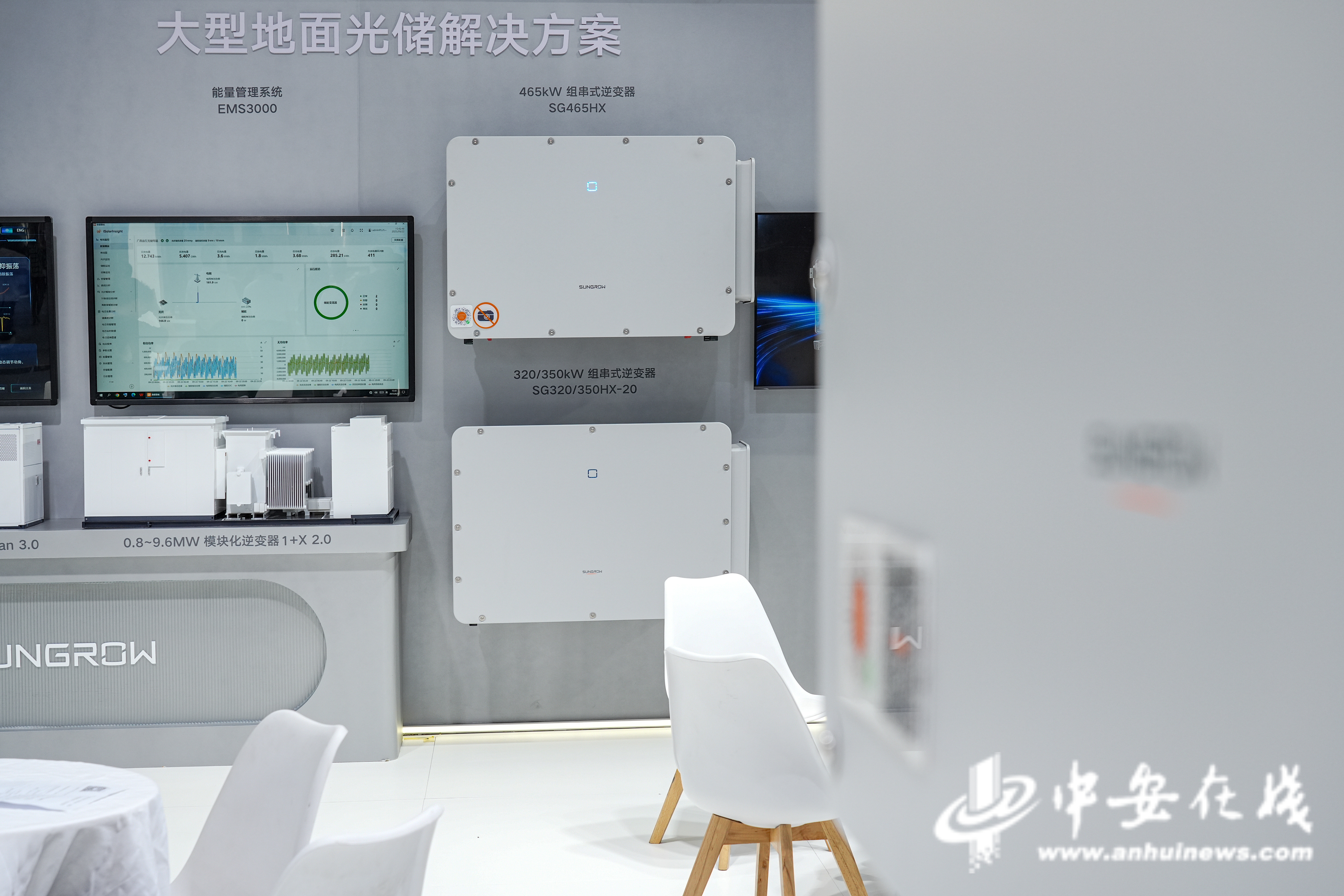 “这款465kw组串式逆变器是我们今年带来的全新产品。”大会展厅新能源展区,阳光电源解决方案工程师许德刚告诉记者,这款新品的直流输入电压达到1600伏,交流输出电压达到1000伏,使得发电量得到大幅提升。