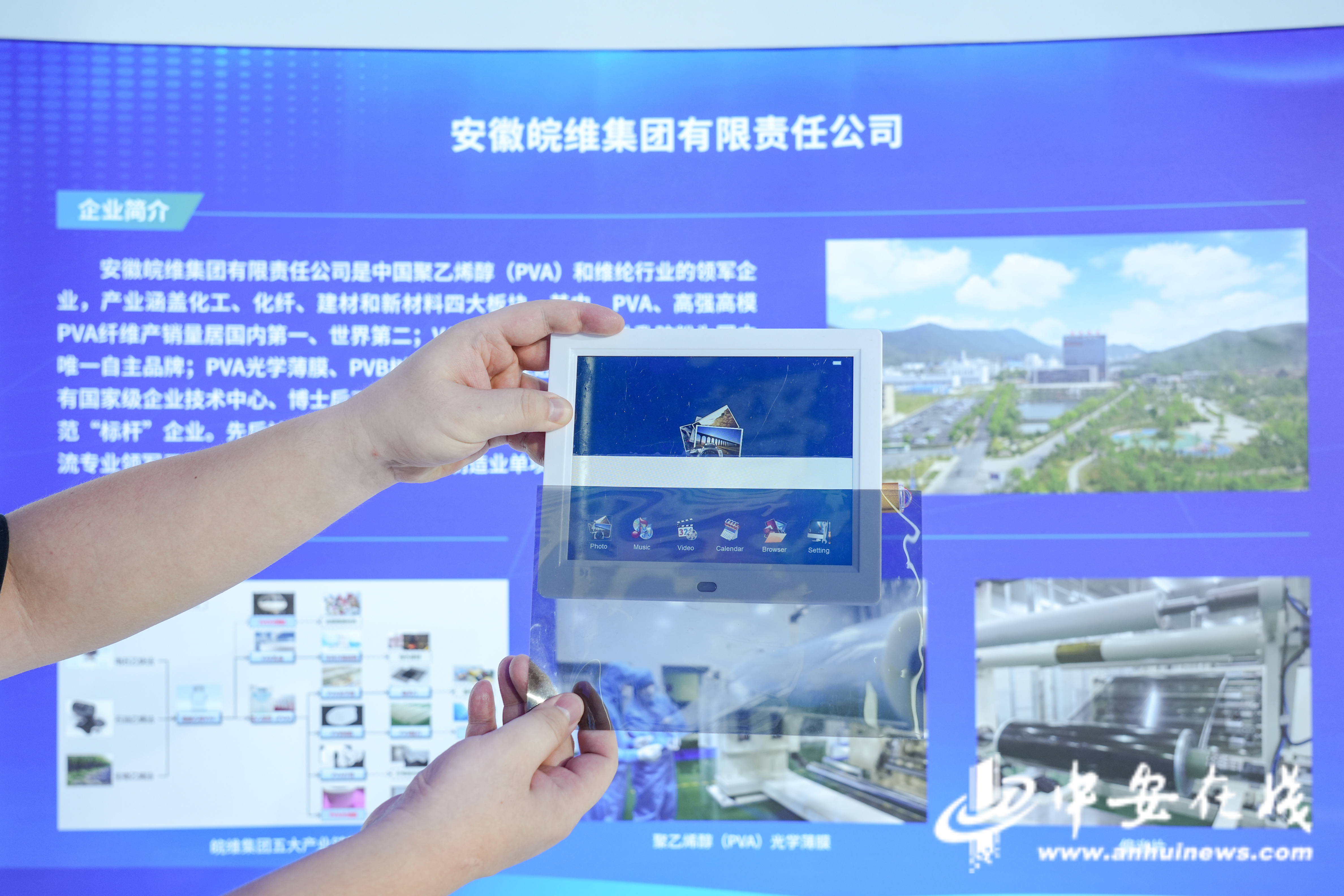 在新材料展区,聚乙烯醇(PVA)和维纶行业的领军企业安徽皖维集团带来其实现进口替代的PVA光学薄膜、PVB树脂及胶片。“我们的相关技术处于行业领先水平。”展台负责人王旭芳告诉记者,公司的PVA、高强高模PVA纤维产销量居国内第一、世界第二。