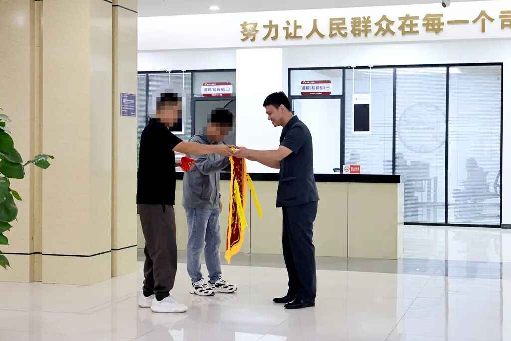 “我还以为这笔钱早就没下文了,没想到你们一直记着!”9月22日一大早,徐某将一面“公正司法解民忧 一心为民办实事”的锦旗送到了固镇法院执行局执行干警手中。