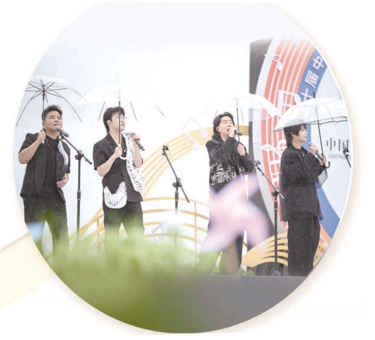 随着悠扬旋律响起,著名歌唱家阎维文身着笔挺西装稳步登场。当《我们的祖国歌甜花香》的前奏轻轻漾出时,他雄浑嘹亮的嗓音瞬间点燃全场热情。台下观众纷纷挥舞小国旗,跟着节奏轻轻哼唱,画面格外动人;紧接着,歌手王一岚携滁州原创歌曲《山水之间》登台献唱。这首作品的歌词,以宋代文豪欧阳修谪守滁州时创作的《醉翁亭记》为蓝本,字句间尽显滁州的灵秀风光;歌手林墨带来的《我会等》,以温柔旋律传递坚守力量;水木年华组合献上《一生有你》《就算没有很伟大的梦想》两首经典曲目,熟悉旋律一响起便引发全场大合唱;著名黄梅戏表演艺术家韩再芬携手一众青年演员,共同献唱串烧《天下黄梅》,醇厚婉转的腔调里满是乡音,不少安徽观众跟着轻轻哼唱,眼角眉梢满是亲切。