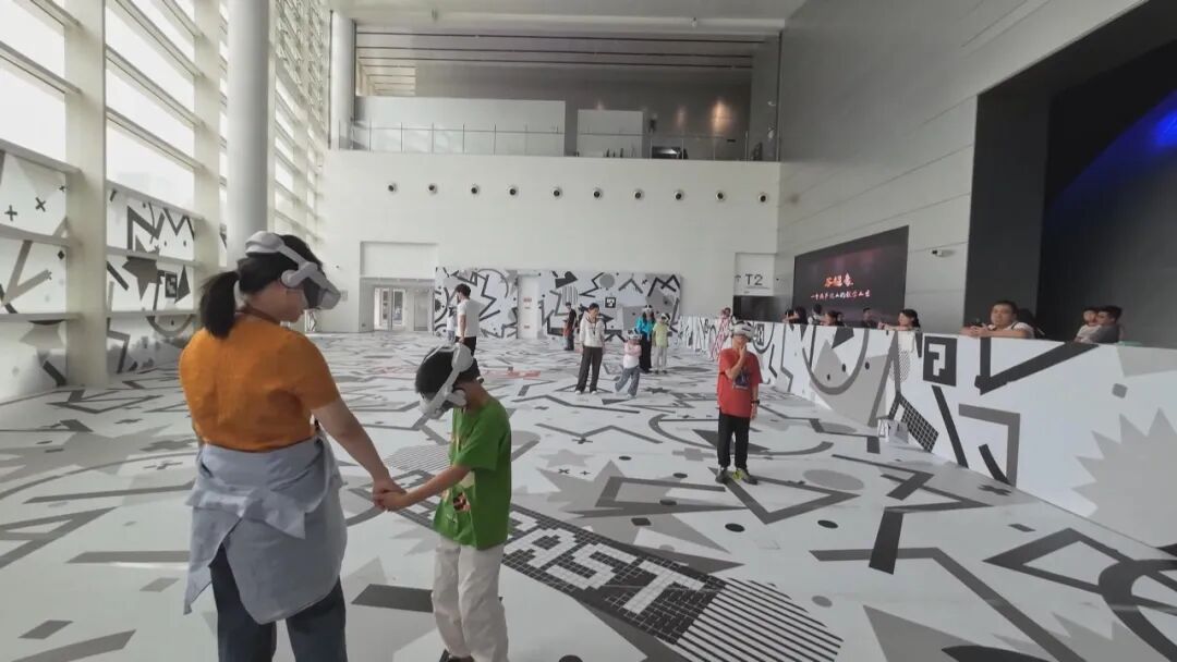 与常规VR体验不同,这里采用了先进的大空间定位技术,可以实现多人同时在虚拟场景中自由移动、协作互动。国庆期间,该区域还上新多个主题内容,吸引众多亲子家庭前来打卡体验。