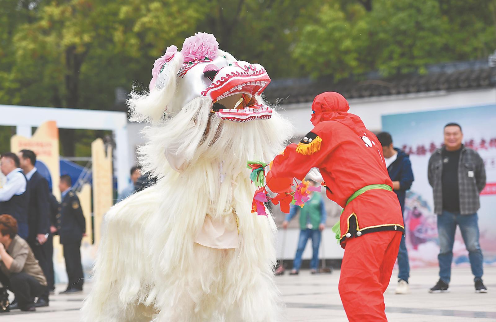 安徽省非物质文化遗产(钟馗画)代表性传承人尹婷婷的画案前,围了一圈游客。她手持毛笔,先以浓墨勾勒钟馗的发髻,笔锋一转,粗粝的胡须便根根分明。“钟馗画讲究‘眼要利、须要劲、衣要飘’,最关键的是‘朱砂点睛’,一笔下去不能犹豫,这样画出来的钟馗,正气才能透出来。”话音刚落,只见尹婷婷蘸取朱砂,稳稳地点在钟馗的眼眶中,原本静态的人物瞬间眼神凌厉、正气凛然,引得周围游客连连赞叹。现场不少青少年也拿起毛笔,在传承人指导下勾勒简单的钟馗画像。“传统文化的种子,就在这一笔一画间悄然种下。”尹婷婷满脸喜悦。