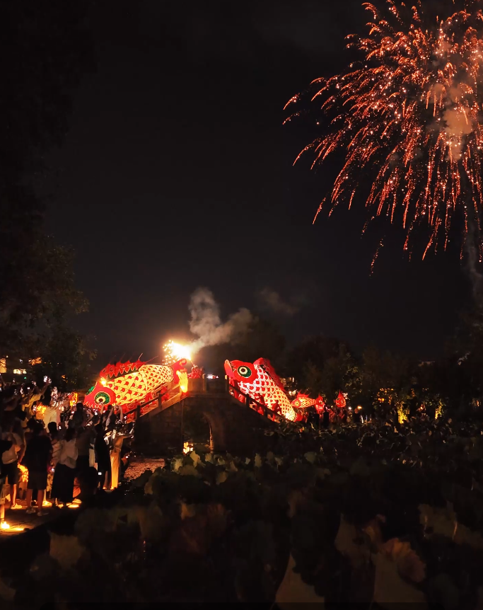 咚咚锵,咚咚锵,当暮色浸没徽州区呈坎古村的马头墙,一阵锣鼓喧天间,竹骨纸鳞的徽州鱼灯苏醒过来,他们流光溢彩如星河流转,昂首摆尾如游龙入海。永兴湖水波荡漾,倒映着灯火斑斓,烟花绚烂绽放,与鱼灯交相辉映,光影交错间,勾勒出千年徽州的灵动与生机。·洪愿 徽州区文旅体局·