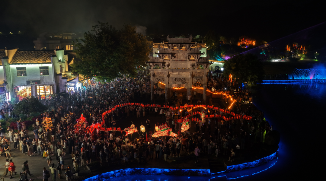 国庆中秋假期,众多游客前往徽州区西溪南古村落,白天游览徽风古村,欣赏江南美景,夜晚观看鱼灯夜游表演,体验传统徽州民俗文化。9月30日至10月7日,西溪南古村落推出“溪南奇妙夜”活动,包含火车探秘、鱼灯夜游、篝火晚会等项目,为游客提供全方位、全天候体验乡村慢生活假期目的地。·谈娜 徽州区委宣传部·