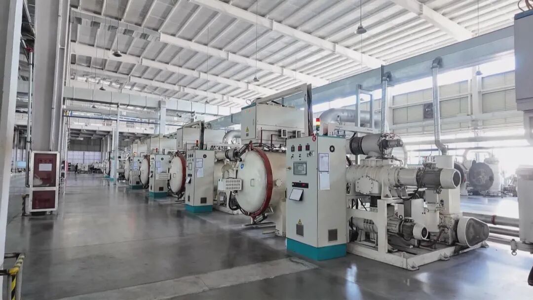 我们现在来到了六安经开区的瀚海新材料股份有限公司智能化生产车间,大家看到的这些设备叫真空全自动烧结炉,通过数字化改造,让原本稀土烧制过程中难以控制的温度得以恒定,不仅提高了生产效率,良品率也提高了10%以上。
