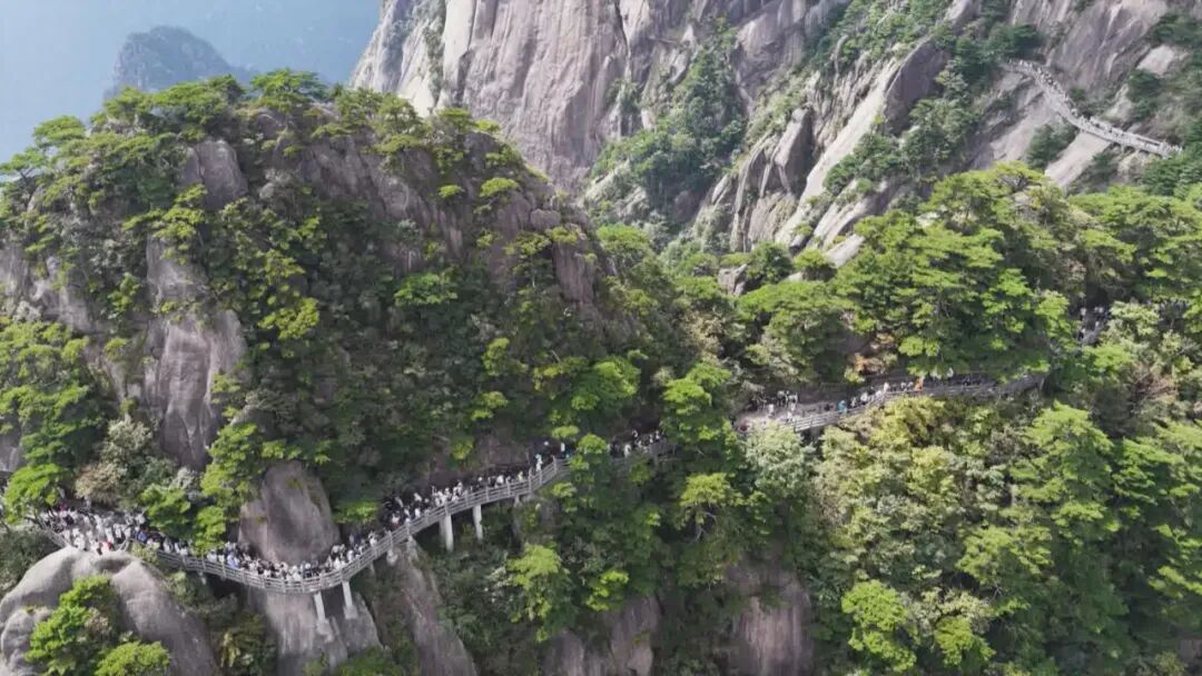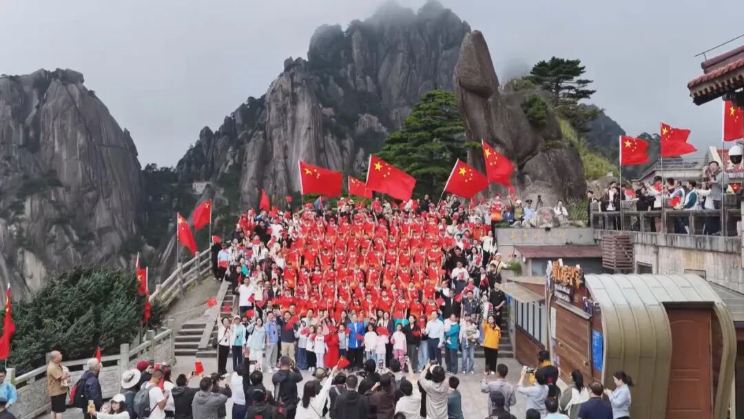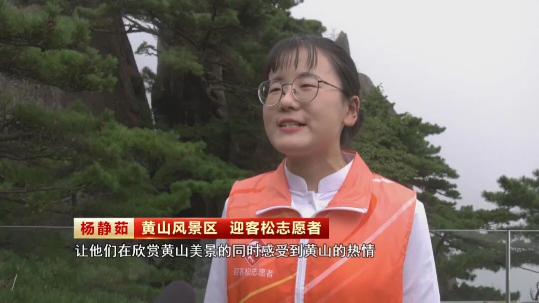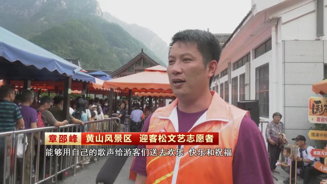 国庆中秋假期,黄山风景区天气晴好、美景醉人。人群当中,一位位身穿鲜红马甲的迎客松志愿者分散在全山各个人流集散地,以专业的讲解和贴心的服务助力游客畅游黄山。
