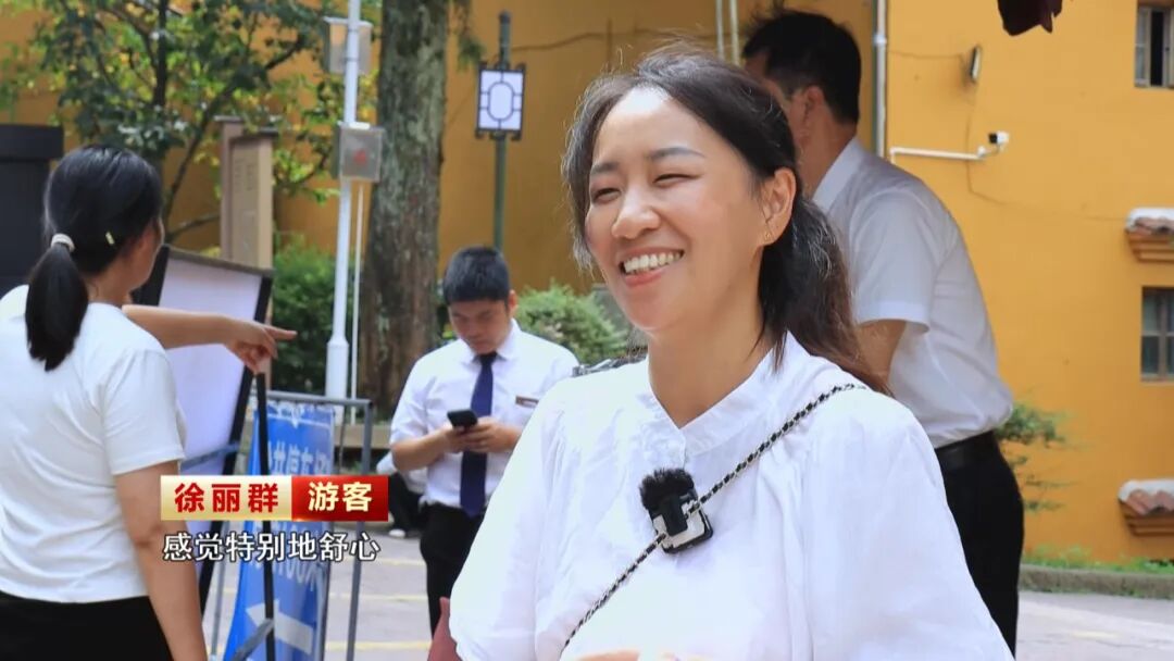 这个志愿服务台,它不仅可以提供一些基础的旅游服务,像免费的热水、旅游咨询等等,如果当游客(发生)突发情况,我们这些志愿者他也是受过了专业的培训的,能够让游客在九华山玩得放心。