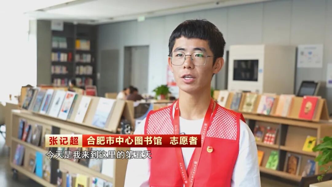 志同道合、家国共团圆,在合肥,这个假期,许多市民选择在满满书香中度过。一大早,合肥市中心图书馆门外排起长长的队伍,在志愿者的引导下,大家依次进馆。刚刚进入大学的张记超放弃假期休息,来到这里为读者提供各种服务。