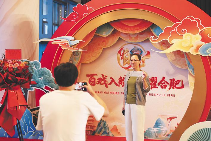 不少外地戏迷也专程赶来。从江苏南京赶来的卫子旗是江苏省演艺集团昆剧院的忠实戏迷,今年刚“入坑”昆曲的她已经看了差不多近20场演出。“听说‘百戏入皖’有这么实惠的票价,我们昨天看完南京的演出就立刻坐高铁来合肥了。” 她还特别提到,“百戏入皖·星耀合肥”活动不仅能让观众看到昆曲,还能接触到不同剧种,“以最低成本感受多样的传统文化,对戏迷来说太幸福了!”