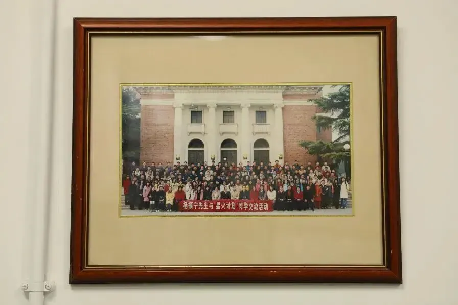 书屋一角还原了杨振宁先生在清华大学高等研究院的办公室场景,从家具布置到实物摆设,力求呈现杨先生生前伏案工作的原貌,为参观师生营造一种跨越时空的对话感和亲切感。步入书屋,仿佛能感受到杨振宁先生那份严谨的治学态度、深厚的爱国情怀和心系母校的深情厚谊。