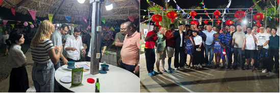 索约气体处理项目现场,业主代表、分包单位及来自海内外的参建员工欢聚一堂。项目负责人简要回顾工程节点,向各方致以谢意。随后,中安员工轮番登台:中文老歌、罗安达传统舞步、即兴互动游戏掌声不断,现场化作一片欢乐海洋。中外文化在此交融,掌声此起彼伏,主宾畅叙情谊——从项目建设细节聊到传统节俗,从合作趣事谈到未来愿景,跨国友谊不断升温。各方一致表示,将以此次活动为契机,进一步增强凝聚力,全力推动项目早日竣工投产,共同书写中安合作共赢的新篇章。
