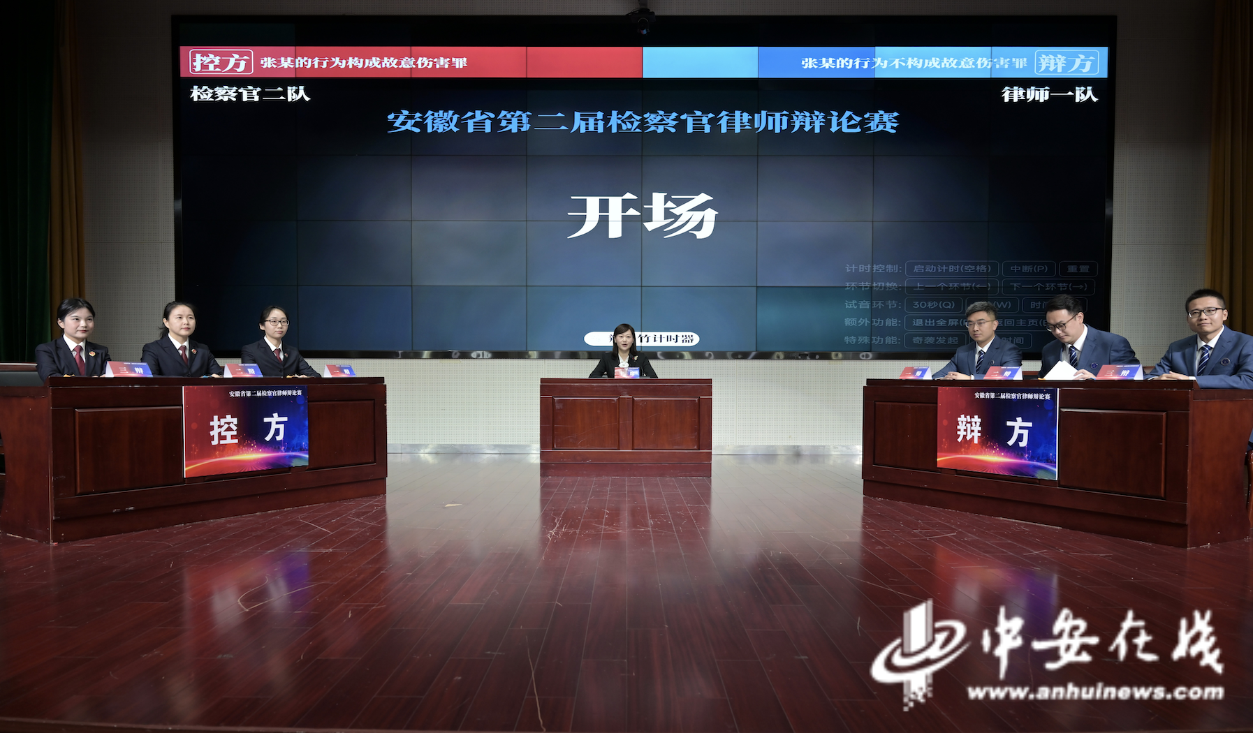 中安在线、中安新闻客户端讯 11月3日,由省检察官协会、省律师协会主办的安徽省第二届检察官律师辩论赛在合肥成功举办。省检察院党组成员、副检察长、一级高级检察官鲁建武,省司法厅党委委员、副厅长、一级巡视员,省律师行业党委书记张国安出席并致辞。