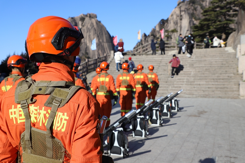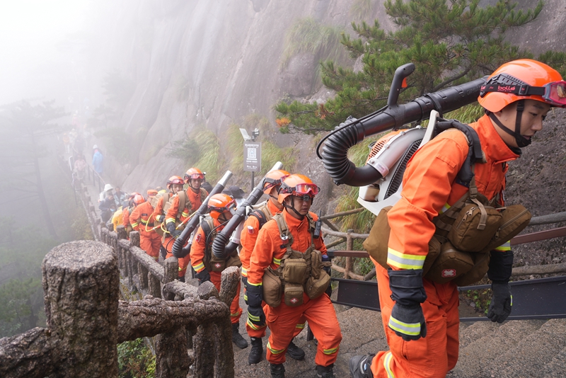 中安在线、中安新闻客户端讯 清晨的黄山,浓雾还未散尽,一支身着橙色防火服的队伍,正背着重达几十斤的风力灭火机和其他扑火装备,沿着陡峭的山路艰难跋涉。汗水浸透了他们的衣背,年轻的脸庞在负重下显得格外坚毅。