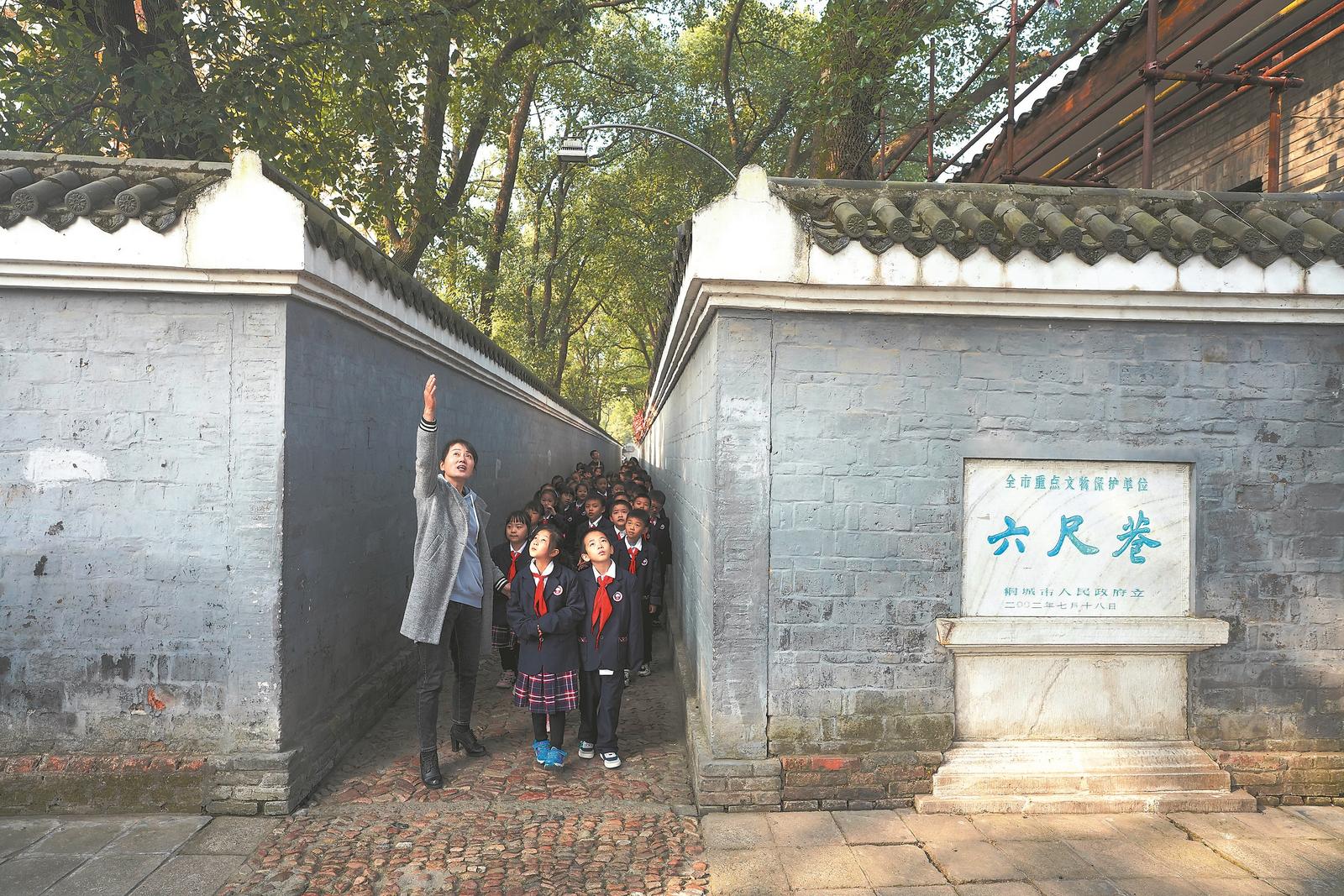 桐城市东关小学老师在向学生们讲解六尺巷典故。(资料图片)记者 李博 摄