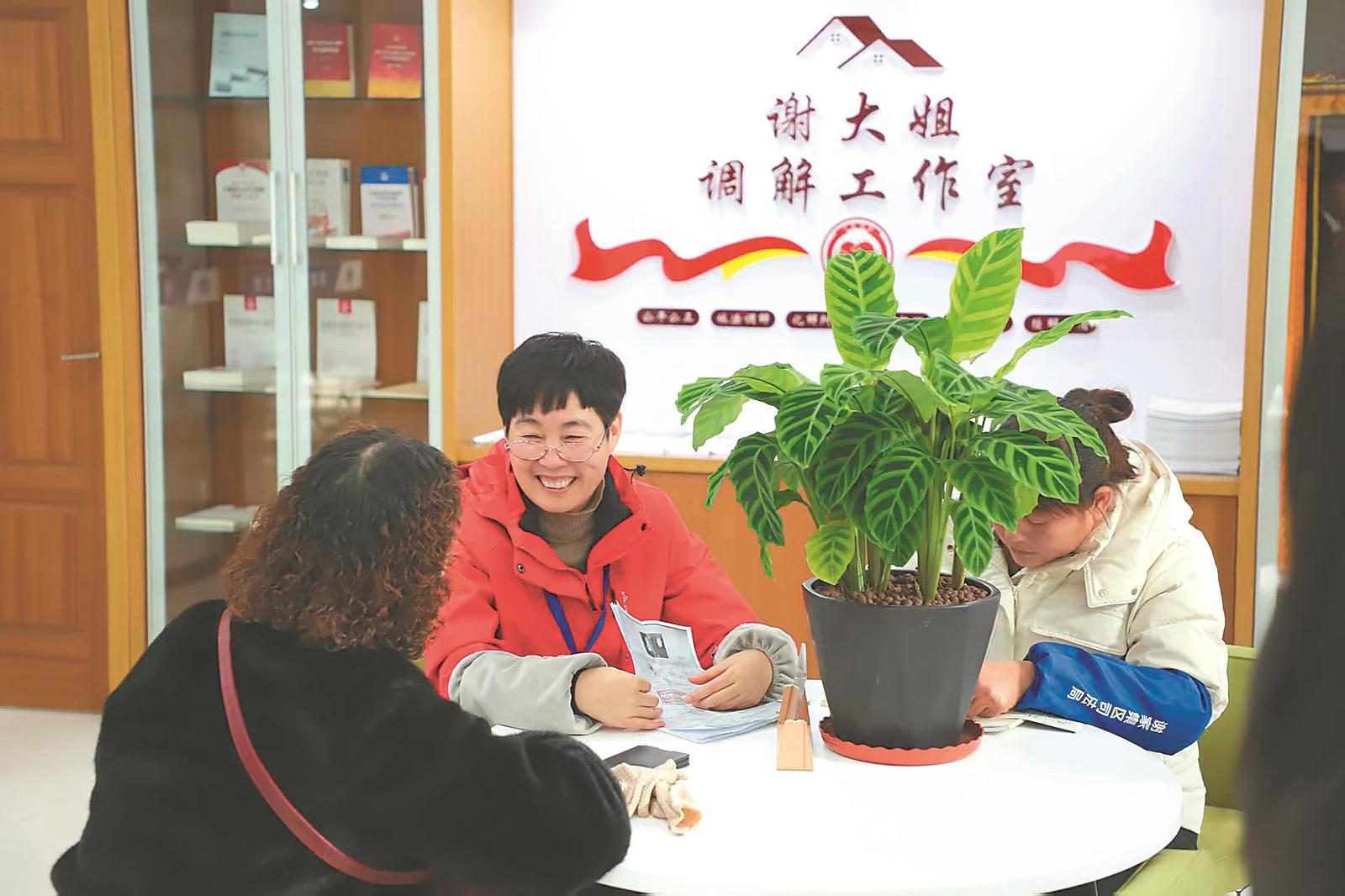 淮南“谢大姐”调解工作室调解员在开展调解工作。(资料图片)