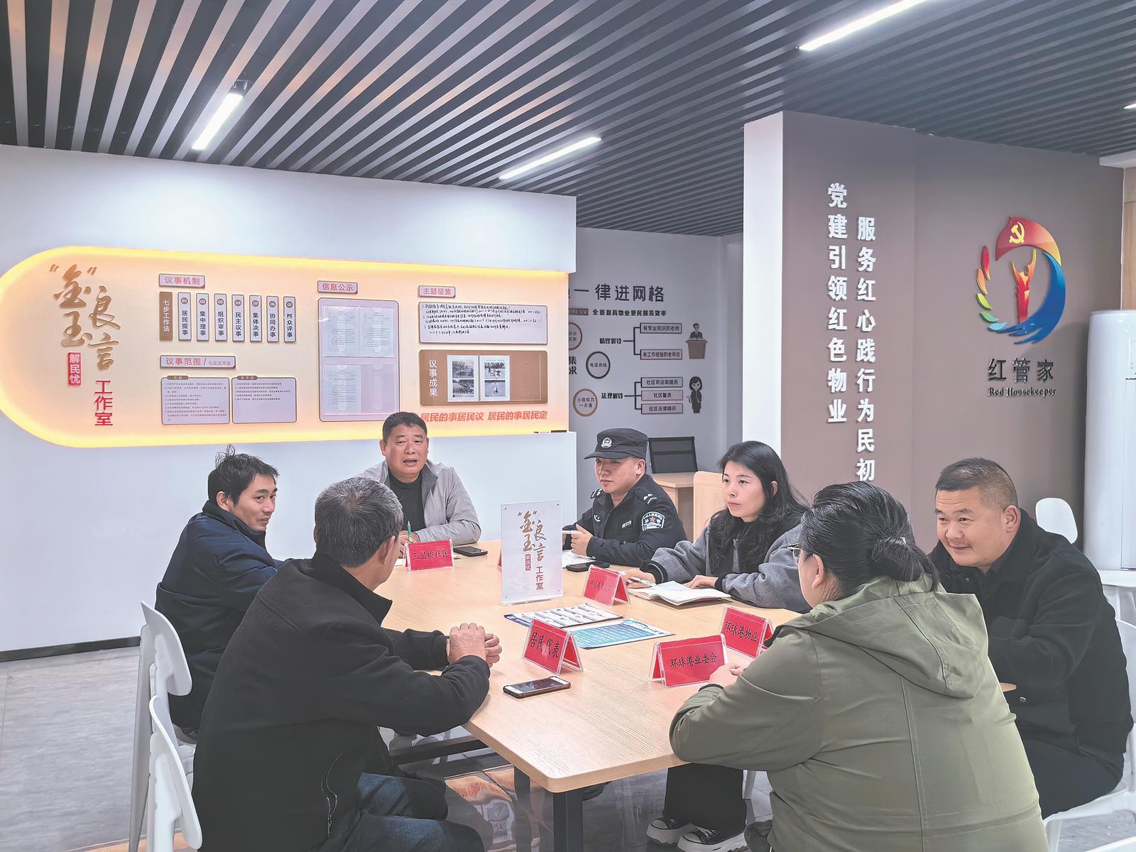 六安市金安区三里桥街道三里桥社区依托“金”玉良言解民忧工作室,组织多方共议小区治理难题。通讯员 沈媛 摄