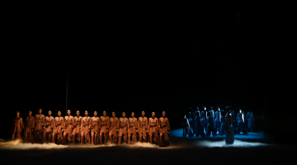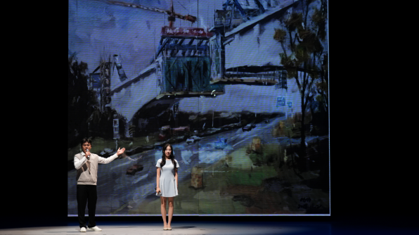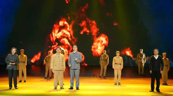 思政大课创新采用“师生同台 共创‘艺’讲”的融合教学模式,由安徽艺术学院80后思政课教师高元龙与00后大学生张安然、项梦云联合主讲,点面结合展示习近平新时代中国特色社会主义思想的磅礴伟力如何引领波澜壮阔的江淮巨变。课程讲授中穿插话剧、影像歌舞、情景朗诵、灯光影像等多个校园原创文化作品,在满满的科技感、沉浸感中实现思政内容与专业教学的深度融合。“科技创新策源地”部分,原创话剧《抉择》以工程兵刘春光故事为切入点,通过与邓稼先、杨振宁等人跨越生死的对话,动情演绎科技工作者为国奉献的崇高抉择。“新兴产业聚集地”部分,《未来已来》运用全息技术,生动呈现了安徽在新能源汽车等前沿领域的集群优势与领先突破以及学校在服务新质生产力上的创新创造。“改革开放新高地”部分,以四幅美术作品把安徽改革开放近五十年的光影串成江河长歌,再现江淮大地文化脉动。“全面绿色转型区”部分,通过群舞与影像的融合表现,在舞蹈和视觉对照中形象描绘“引江济淮”工程构建的当代生态画卷。
