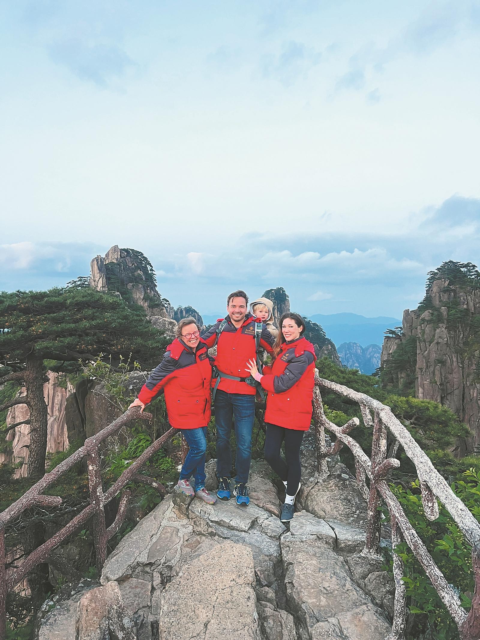 外国游客在黄山拍照打卡。通讯员 吴文贵 摄