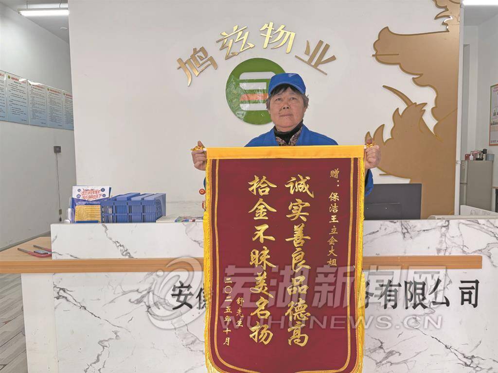 当天上午,拿回失而复得的钱包,失主舒先生激动不已:“速度太快了,要不是你们联系我,我都没发现钱包丢了。”为表感谢,舒先生特意定制了一面锦旗送给王立会。“诚实善良品德高 拾金不昧美名扬”的金色大字格外醒目。在物业公司,同事们对王立会拾金不昧的举动并不意外,“王大姐工作一向认真负责,为人诚恳踏实,她负责保洁的商业街是小区的‘门面’,交给她,我们很放心”。