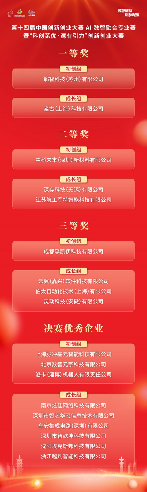 附:第十四届中国创新创业大赛AI数智融合专业赛决赛,获奖企业名单