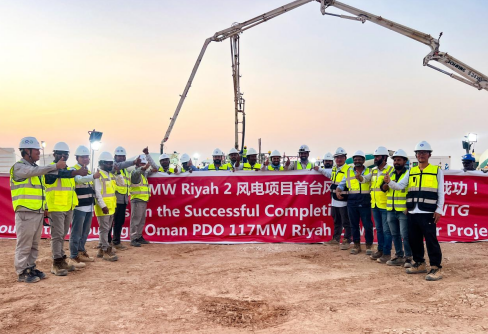 中国化学三化建承建的阿曼佐法尔省光伏风电项目首台风机基础浇筑工程顺利完成
