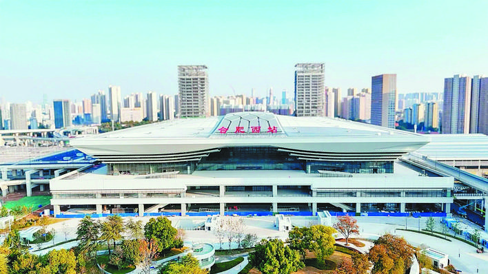 合肥西站也是我省首个站城融合站房,集铁路客运、城市轨道交通、公交、商业、酒店、办公、市民休闲娱乐等功能于一体,成为新一代“城市客厅”。