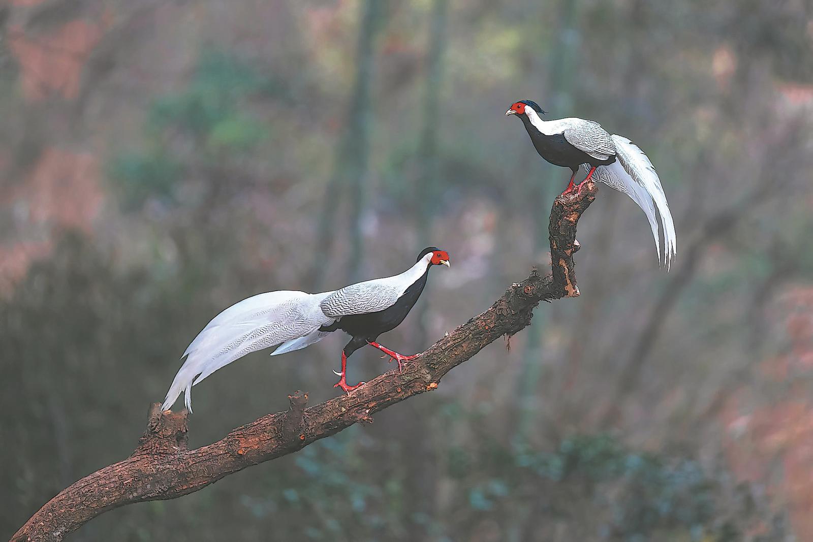 黄山市祁门县石迹村是被誉为“林中仙子”的珍稀鸟类白鹇的重要栖息地。图为白鹇在林间枝头休憩。