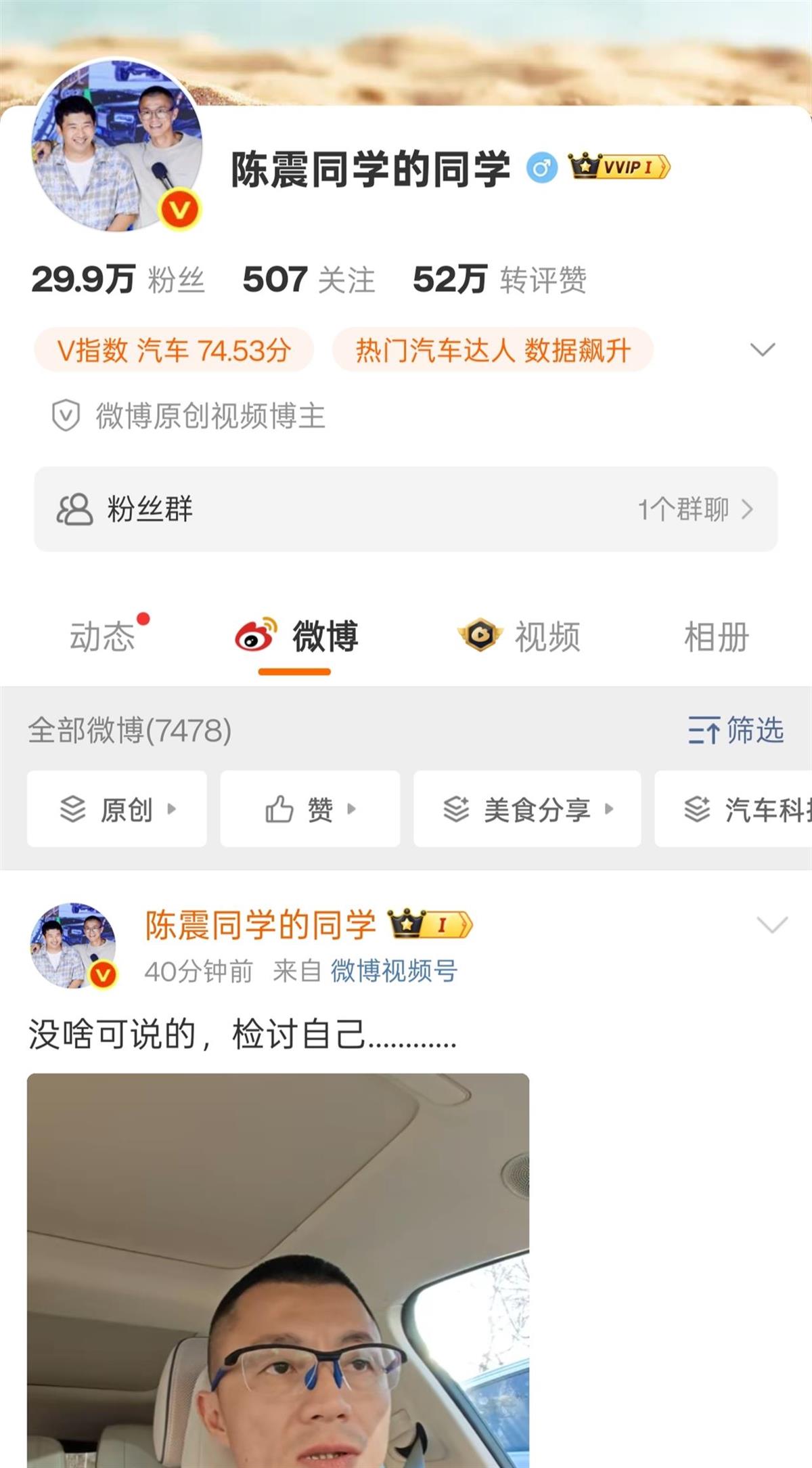 不过,该视频发布后不久就被删除。另一条文字反思的微博暂未删除。目前该小号状态正常。当天早上,陈震用小号一共更新了三条微博,目前还保留两条。评论区有网友发出疑问,陈震小号也应被禁言。随后,记者就此事尝试联系微博客服,电话一直未被接通。